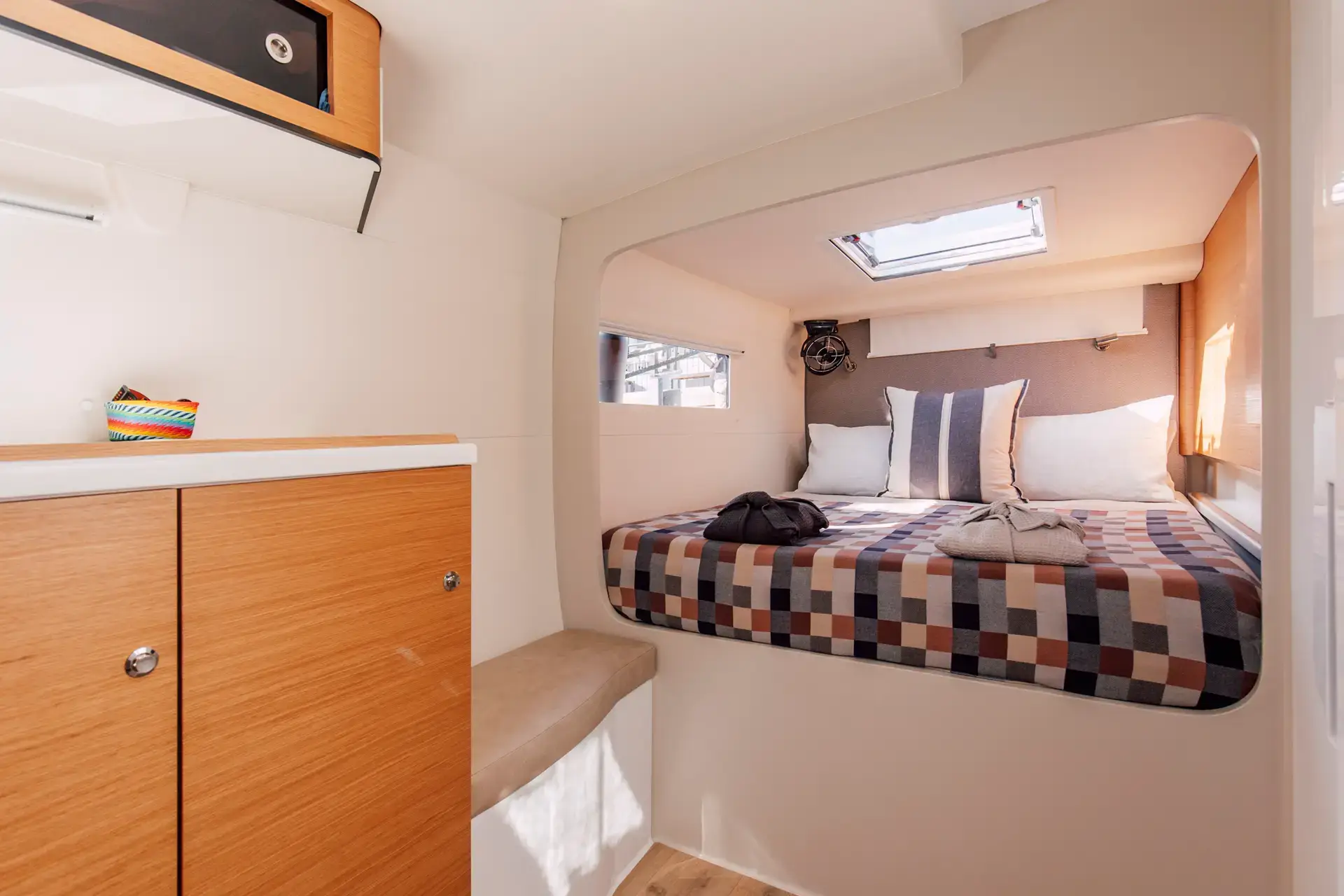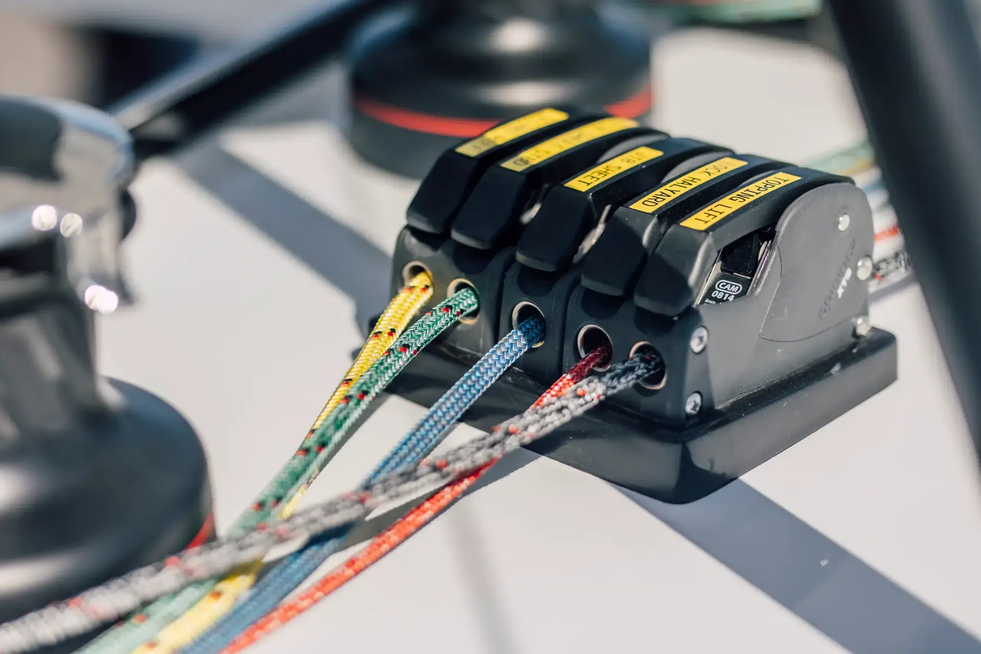 Level, rope-free decks make movement safe and easy, while the perfectly balanced sail plan – featuring a self-tacking jib and an intuitive mainsheet bridle system – offers smooth, enjoyable handling, even when sailing short-handed.