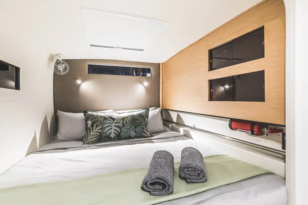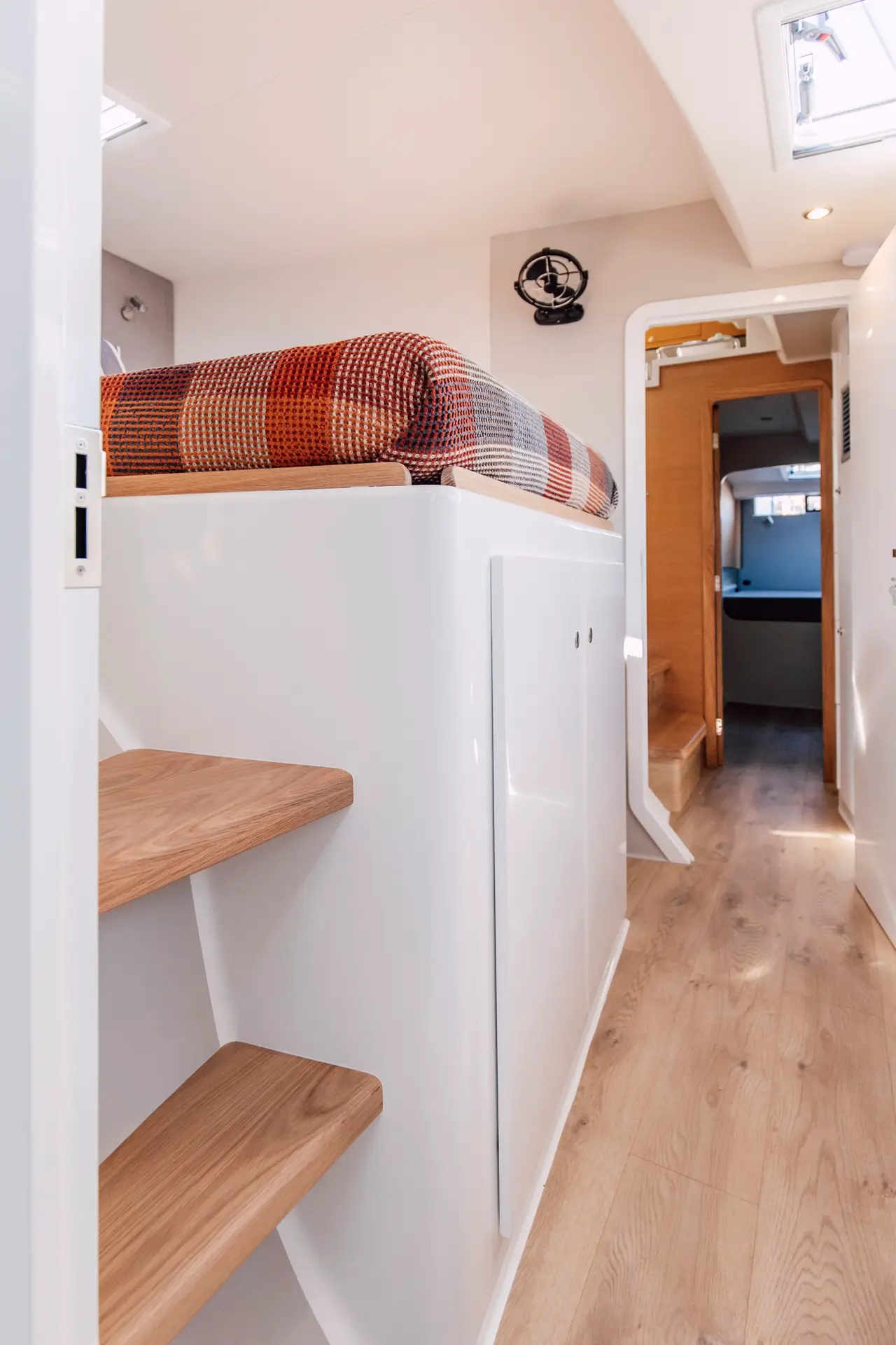 The generous saloon, cabins, galley, and cockpit echo unmistakable quality, while smart spatial planning ensures ample storage and an open, airy feel throughout.